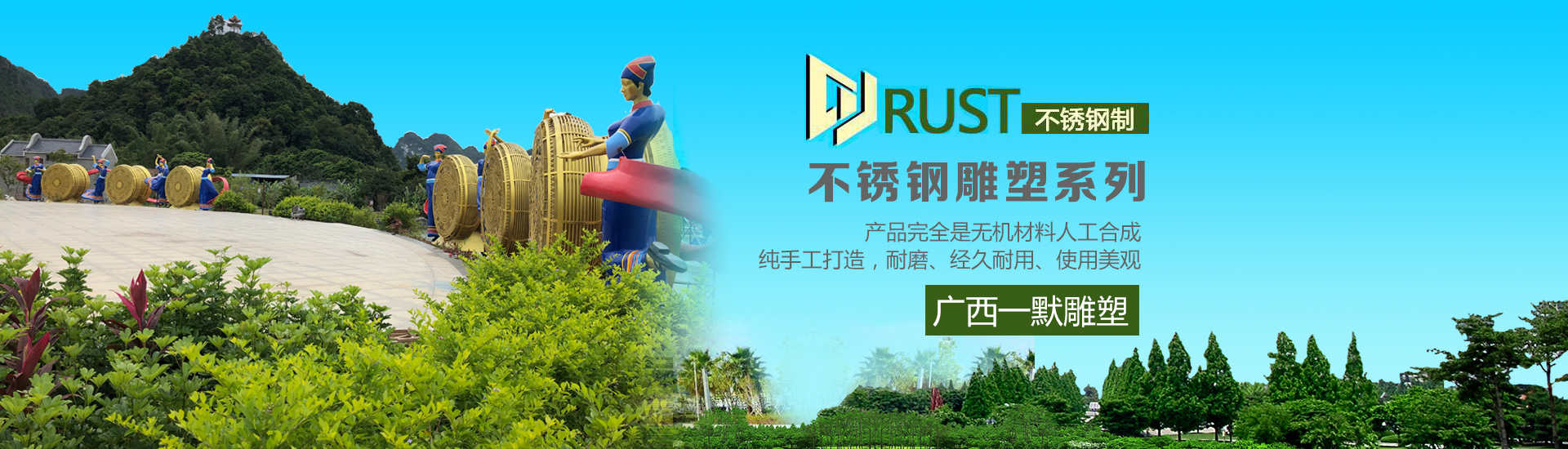 廣西一默雕塑有限公司是一家專業(yè)設(shè)計(jì)制作歐式景觀產(chǎn)品、家居飾品等各類人造砂巖、玻璃鋼及相關(guān)產(chǎn)品的企業(yè)。我們的口號是“用藝術(shù)來裝點(diǎn)環(huán)境,使藝術(shù)融入環(huán)境之中”。現(xiàn)開發(fā)的主要產(chǎn)品有砂巖歐式構(gòu)件、砂巖浮雕、鏤空柱、鏤空花板、藝術(shù)花盆、塑模假山、景觀雕塑(裝飾浮雕、水景雕塑)、藝術(shù)噴泉等。   石膏、水泥、玻璃鋼、雕塑藝術(shù)景觀類產(chǎn)品有:玻璃鋼(FRP)、玻纖水泥(GRC)、玻纖石膏(GRG)等各種材料的造型雕塑。所有產(chǎn)品均可以按照要求任意著色、彩繪、打磨明暗、貼金;并可以通過技術(shù)處理使作品表面呈現(xiàn)粗獷、細(xì)膩、龜裂、自然縫隙等真石效果。主要生產(chǎn)顏色有黃砂巖、白砂巖、紅砂巖。純手工打造,耐磨、經(jīng)久耐用、使用美觀。產(chǎn)品完全是無機(jī)材料人工合成,屬于綠色環(huán)保產(chǎn)品。可根據(jù)客戶來圖定做......